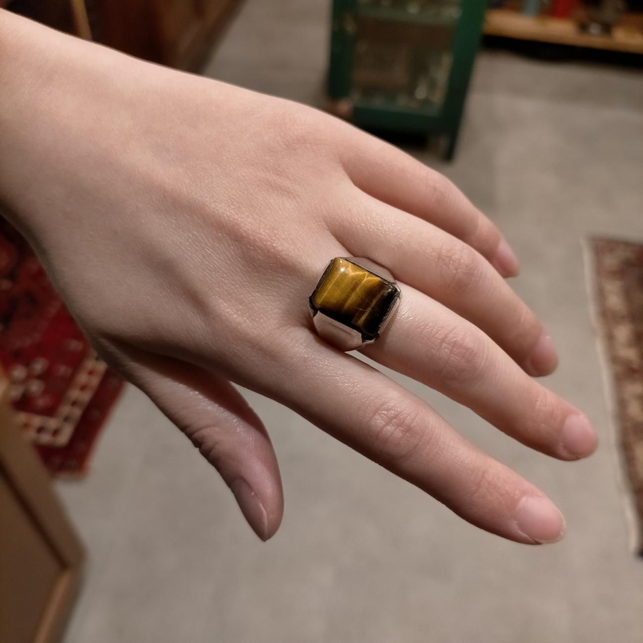 こちらアメリカで買い付けましたヴィンテージのタイガーアイシルバー製リングになります。