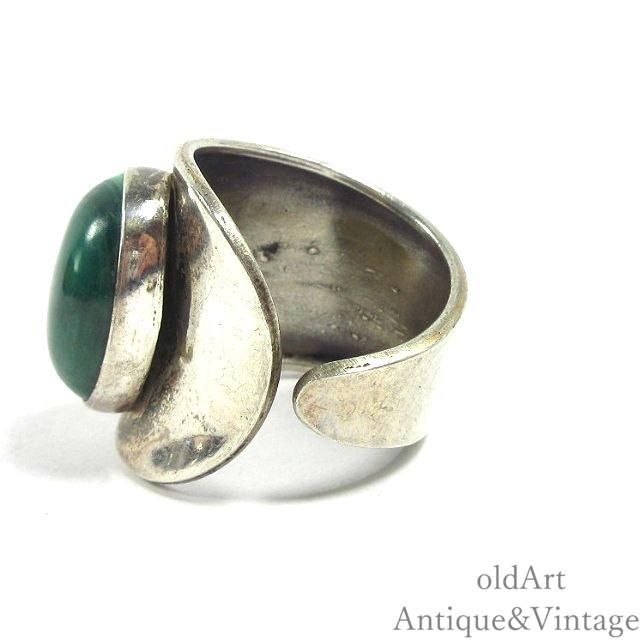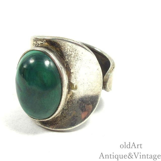 こちらは、ヴィンテージのメキシカンジュエリー、マラカイトのスターリングシルバー製リングになります。