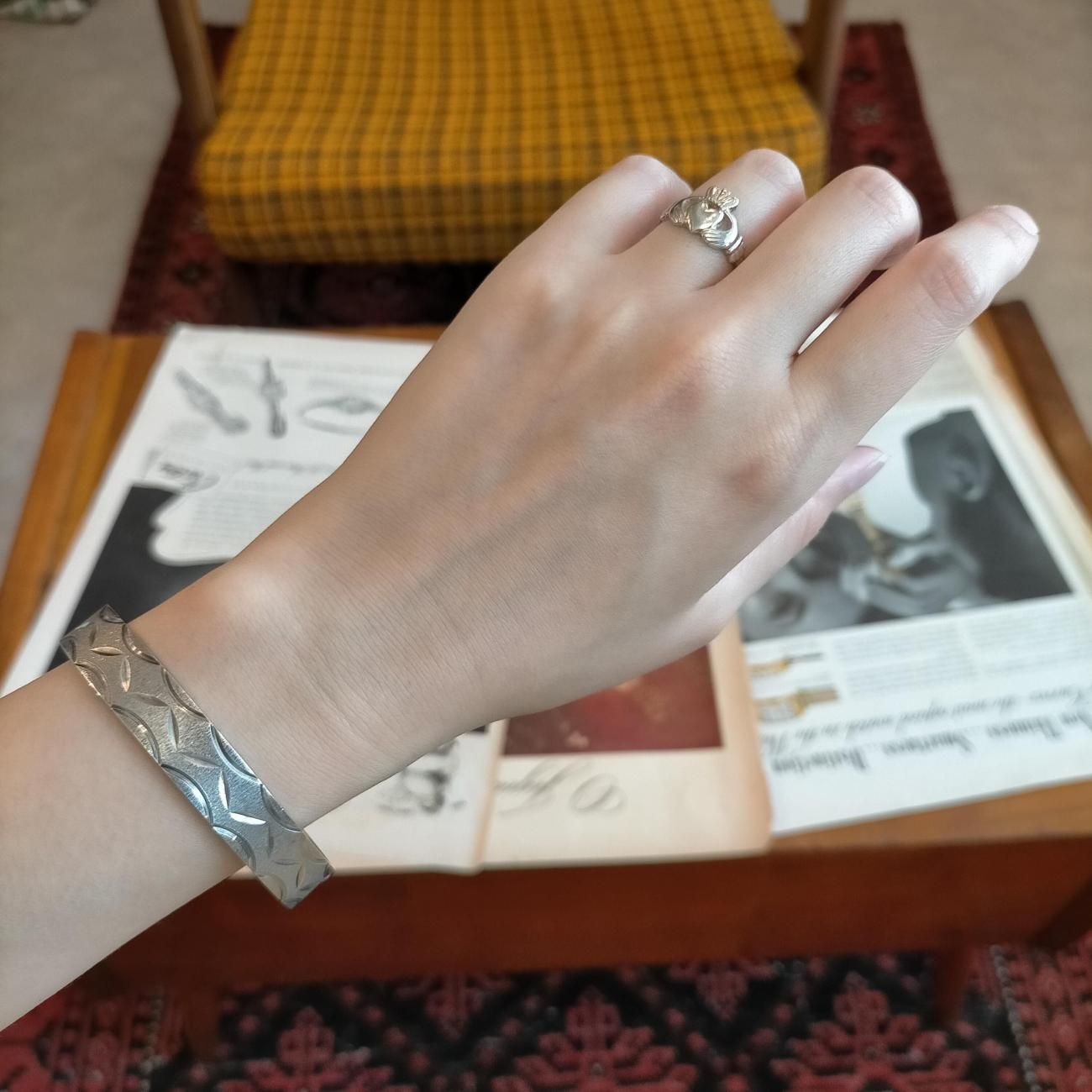 英国イギリス1972年製ヴィンテージ彫刻スターリングシルバー製ブレスレット/バングル【17.5cm】【N-27542】