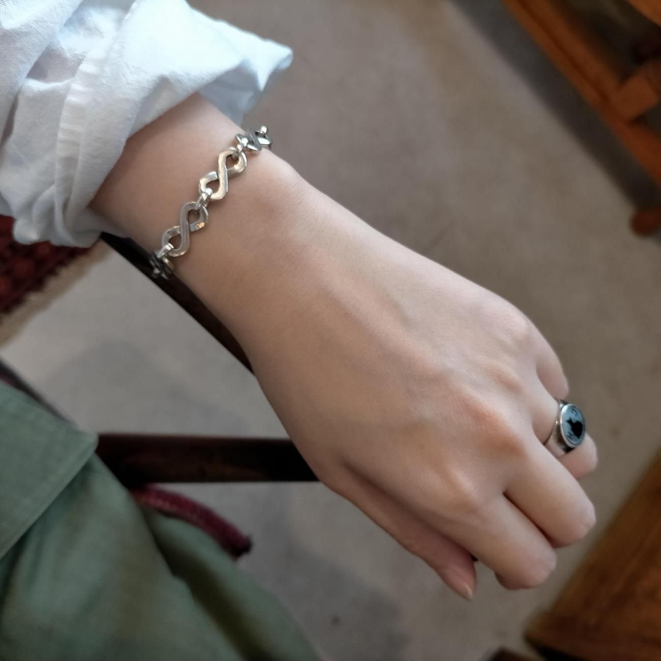 英国イギリス製ヴィンテージインフィニティチェーンブレスレット/ホールマーク刻印【SILVER925】【19cm】【N-27738】