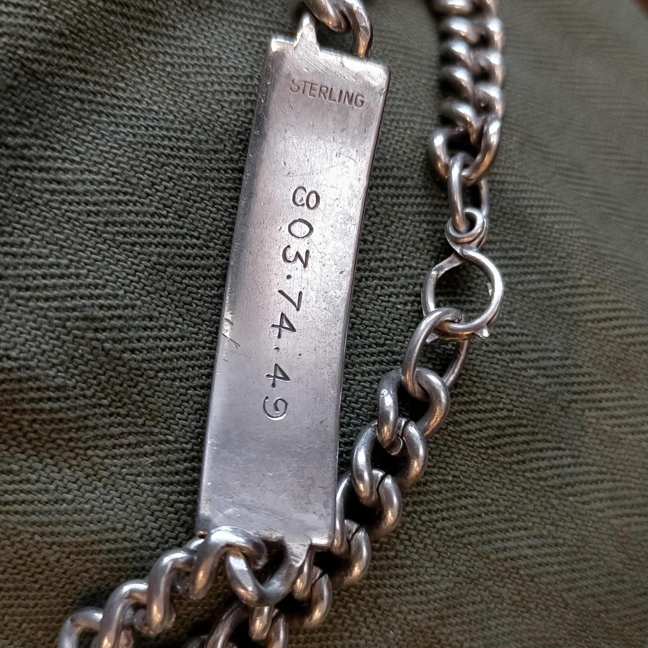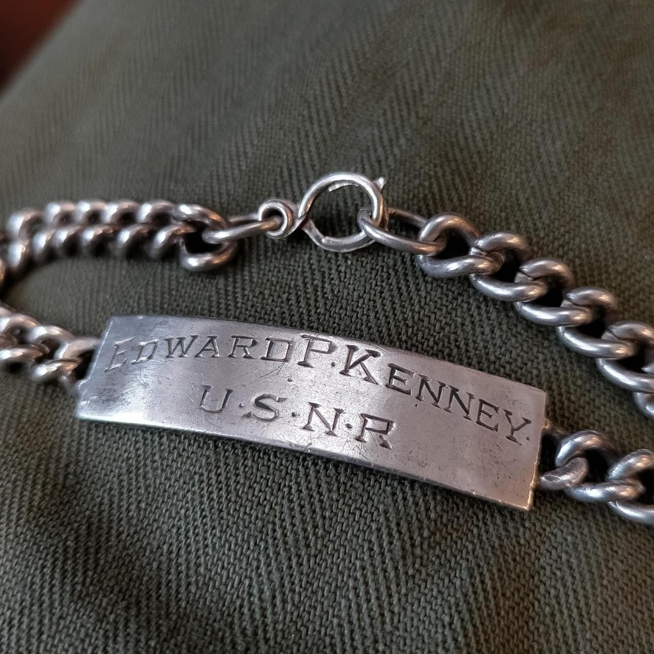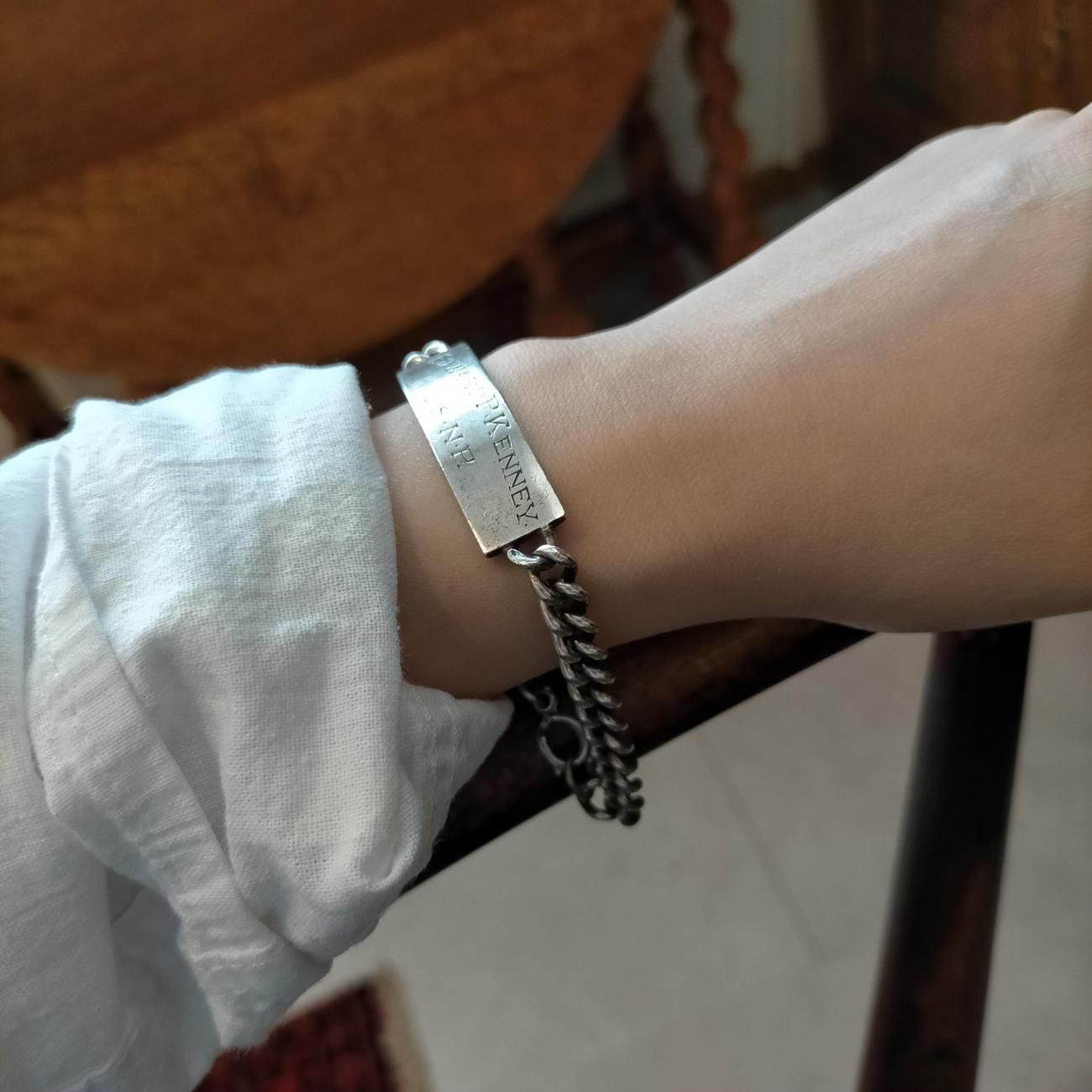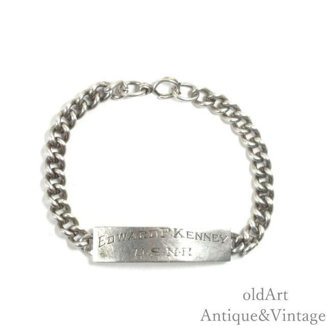 ホーム >ブレスレット >ブレスレット ホーム > Military/Collegeミリタリー/カレッジ > ミリタリーブレスレット USA製1940年代ヴィンテージUSNR/United States Navy Reserve IDタグメンズミリタリーブレスレット【SILVER925】【18.5cm】【N-27742】 商品説明 click! 1940年代製、USA製のヴィンテージUSNR(United States Navy Reserve)IDブレスレット。 スターリングシルバー製で程よい重厚感があり、経年による渋い風合いが魅力です。 表面には「EDWARD P. KENNEY・U.S.N.R」、裏面には「803・74・49」と刻印され、STERLINGの刻印も残っています。手彫りの文字は力強く味わいがあり、全体のバランスも抜群。実際に当時の海軍予備役兵士が身につけていたリアルな証です。 シンプルながら男らしい存在感で、古着やミリタリースタイルに自然に馴染みます。経年による風合いと手仕事の味わいが、手元に渋さと歴史を添える一点ものです。 プレートの直径:約11×41.4mm 全長(平置き採寸):約19.5cm、腕周り(内周):約18.5cm 【腕周り16.2cmのスタッフですと余裕のある着用感です】 *材質:スターリングシルバー *色:シルバー *刻印:STERLING *重量:23.9g 年代物になりますので経年による擦れや小傷・シルバー特有の変色はありますが、年月を重ねてきたヴィンテージならではの雰囲気が素晴らしい逸品です。 年代物の大変貴重なコレクションです。 一点物になりますのでこの機会に是非ご検討くださいませ。 大切な方への贈り物にもお勧めです。 プレゼント用ラッピングも承っておりますのでお気軽にご利用くださいませ。 販売価格 39,800円(内税) 購入数 名古屋市緑区大高町伊賀殿3-4 oldArt JR大高駅より徒歩6分(500m)、名鉄鳴海駅より徒歩12分(1km)駐車場(2台):店舗敷地内左から1つ目(小型車専用),2つ目(普通車)最寄りコインパーキング:名鉄協商大高東、名鉄協商大高東2(店舗まで400m) oldArtとは?Click ご注文一万円で送料無料にさせて頂きます。 Freemasonry Scandinavia Glasses Lady Watch Cameo Georg Jensen Claddagh Spoon Jewelry Mascot Doll SNS ツイート information contact この商品を友達に教える 買い物を続ける レビューを見る(0件) レビューを投稿