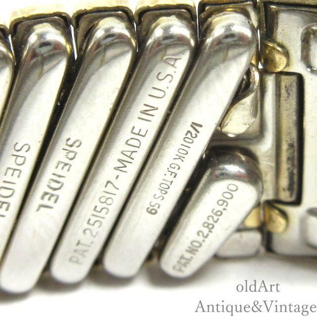 ホーム >ブレスレット >ブレスレット ホーム > USAアメリカ > ブレスレット ホーム > Military/Collegeミリタリー/カレッジ > ミリタリーブレスレット USA製SPEIDEL社1950年代ヴィンテージりロケット蛇腹ベルトブレスレット金張り10KGF【箱付き】【17cm】【N-27849】 商品説明 click! こちらは、アメリカ製SPEIDEL社ヴィンテージ1950年代頃の蛇腹ロケットブレスレットになります。 中央のプレート部分はロケットになっており、開く仕様になっております。 ブラックとゴールドのコントラストで存在感があり雰囲気の良い一本です。 伸縮する蛇腹ベルトですので着脱も簡単です。 当時のオリジナルケース付きで経年による少しの汚れや金属部分の錆はありますが、ブレスレット自体は殆ど使用された形跡がなくデッドストックに近く大変綺麗で良好な状態です。 ※ペンダントの中には当時のものと思われる写真が入っております、販売時の見本写真の可能性もございますが、ご希望でしたら外して発送も可能です。 プレート(ロケット)の直径:約15.5×41mm 腕周り(内周):約17cm〜 【腕周り16.2cmのスタッフですとゆとりのある丁度良い着用感です】 *材質:ステンレス・金張り・ブラックアクリルストーン *刻印:PAT.NO.2.826.900(特許番号)・PAT.2515817(特許番号)・MADE IN USA・1/20 10KG.F .・TOPS 59・SPEIDEL *色:シルバー・ゴールド・ブラック *重量:26.1g お写真ですとゴールド部分に少しくすみが御座いますが、少し磨くだけで綺麗になりますので、ご希望があれば綺麗な状態でお届けさせて頂きます。 年代物の大変貴重なコレクションです。 一点物になりますのでこの機会に是非ご検討くださいませ。 大切な方への贈り物にもお勧めです。 プレゼント用ラッピングも承っておりますのでお気軽にご利用くださいませ。 販売価格 34,800円(内税) 購入数 名古屋市緑区大高町伊賀殿3-4 oldArt JR大高駅より徒歩6分(500m)、名鉄鳴海駅より徒歩12分(1km)駐車場(2台):店舗敷地内左から1つ目(小型車専用),2つ目(普通車)最寄りコインパーキング:名鉄協商大高東、名鉄協商大高東2(店舗まで400m) oldArtとは?Click ご注文一万円で送料無料にさせて頂きます。 Freemasonry Scandinavia Glasses Lady Watch Cameo Georg Jensen Claddagh Spoon Jewelry Mascot Doll SNS ツイート information contact この商品を友達に教える 買い物を続ける レビューを見る(0件) レビューを投稿