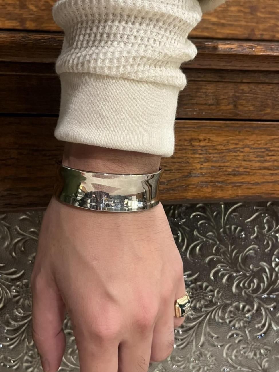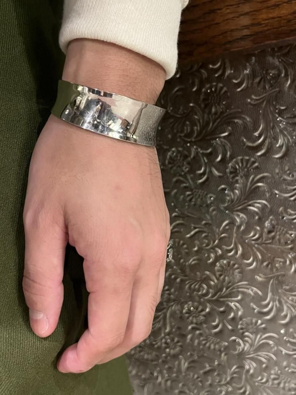 ホーム >ブレスレット >バングル ホーム > United Kingdomイギリス > ブレスレット 英国イギリスシェフィールド製1990-2000年代ヴィンテージモダンバングル/ホールマーク刻印【SILVER925】【N-27862】 商品説明 click! こちらは英国イギリス製スターリングシルバー製のカフバングルになります。 ロンドンを拠点とする貴金属ジュエリーブランドIBB(International Bullion & Metal Brokers Ltd) によって1990年代〜2000年代初期頃に製作されました。 Sheffield(シェフィールド)アセイオフィスで正式に検定を受けたホールマークが刻まれており、 英国製シルバーらしい信頼性とクラフトマンシップを感じられる一点です。 シンプルで無駄のないフォルムながら、幅広で程よいボリュームがあり、銀特有の柔らかな光沢が手元を上品に引き立てます。 確かな造りと存在感が魅力の年代を問わずお使い頂けるヴィンテージバングルです。 ホールマーク/刻印:IBB(工房)・925(SILVER925)・シェフィールドの都市マーク 材質:スターリングシルバー 色:シルバー 重量:約21.7g サイズ:幅20.7mm 厚さ2mm 開口部 約29mm 腕周り(内周):約14.5cm 【腕周り16.2cmのスタッフですとゆとりのある丁度良い着用感です】 【腕周り13cmのスタッフですと緩めで角度により落下します】 年代物になりますので経年による多少の擦れや小傷・シルバー特有の変色はありますが、全体的に綺麗で良好な状態です。 年月を重ねてきたヴィンテージならではのオールド感もあり雰囲気が素晴らしい逸品です。 年代物の貴重なコレクションです。 一点物になりますのでこの機会に是非ご検討くださいませ。 大切な方への贈り物にもお勧めです。 プレゼント用ラッピングも承っておりますのでお気軽にご利用くださいませ。 販売価格 34,800円(内税) 購入数 名古屋市緑区大高町伊賀殿3-4 oldArt JR大高駅より徒歩6分(500m)、名鉄鳴海駅より徒歩12分(1km)駐車場(2台):店舗敷地内左から1つ目(小型車専用),2つ目(普通車)最寄りコインパーキング:名鉄協商大高東、名鉄協商大高東2(店舗まで400m) oldArtとは?Click ご注文一万円で送料無料にさせて頂きます。 Freemasonry Scandinavia Glasses Lady Watch Cameo Georg Jensen Claddagh Spoon Jewelry Mascot Doll SNS ツイート information contact この商品を友達に教える 買い物を続ける レビューを見る(0件) レビューを投稿
