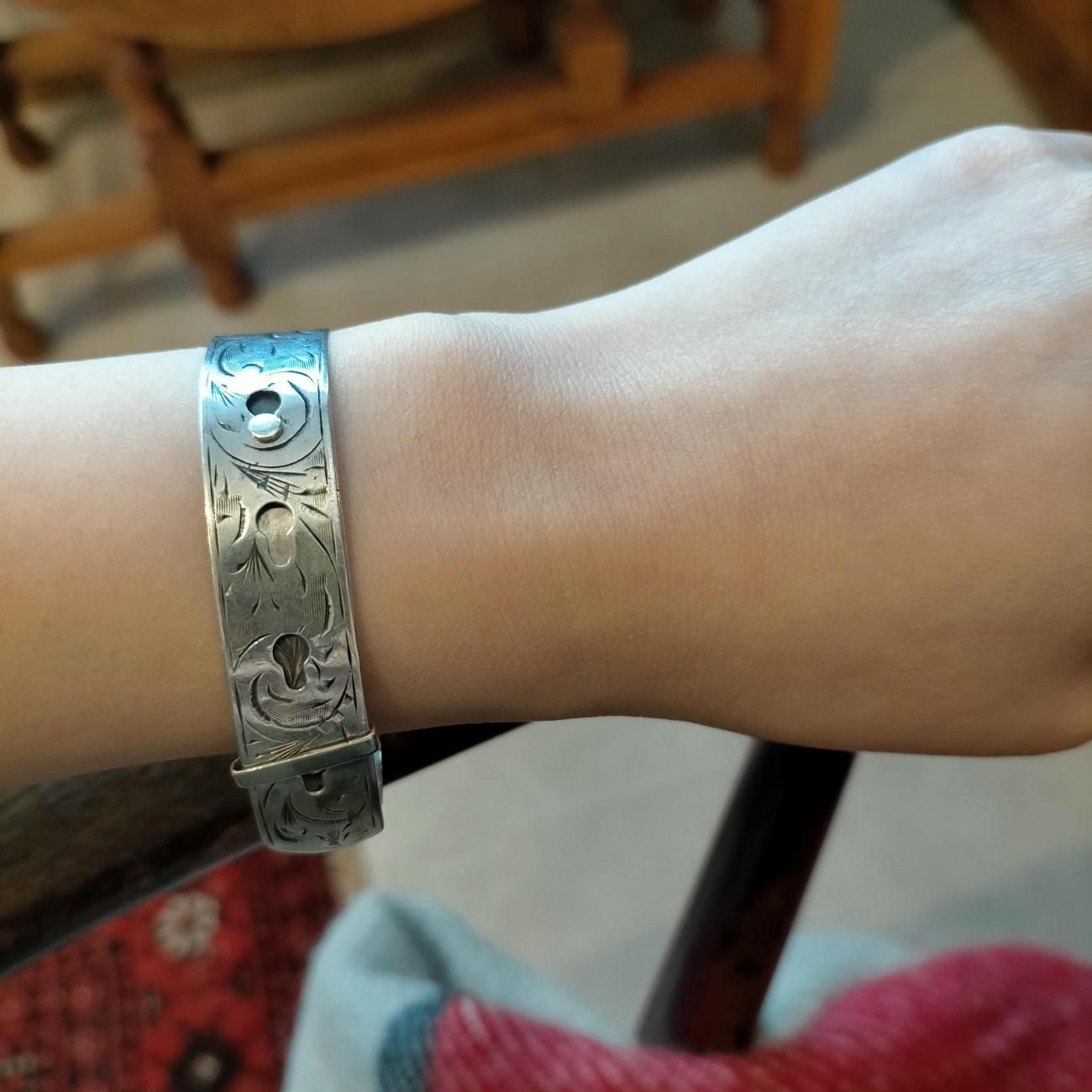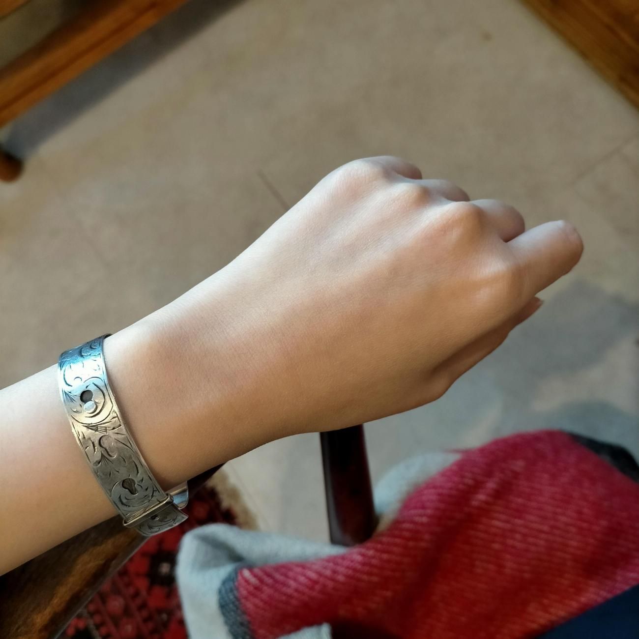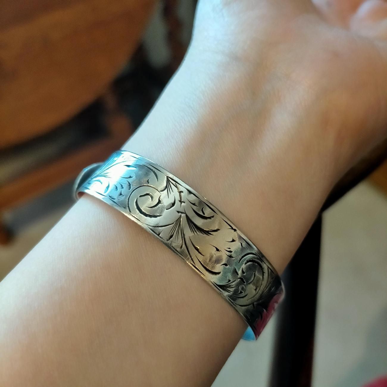 ホーム >ブレスレット >バングル ホーム > United Kingdomイギリス > ブレスレット 英国イギリス製1939年製ヴィンテージエングレービング彫刻スターリングシルバー製アジャスター式バックルカフブレスレット/バングル【15〜19cm】【N-27864】 商品説明 click! こちら英国イギリス1939年にチェスターで製造された、スターリングシルバー製のヴィンテージブレスレット/バングルになります。 アジャスター式になっており、留め具の穴4段階で調整可能です。 繊細な模様が彫られたアンティーク感溢れるデザイン。 男女問わずお使い頂け、着用すると大変雰囲気があり格好良いです。 *ホールマーク/刻印:C.H(工房)・ライオン(SILVER925)・チェスター(都市)・o(年号) *材質:スターリングシルバー *色:シルバー *重量:約14.3g *サイズ:幅12.6mm 厚さ2.7mm 腕周り(内周):約15〜19cm 【腕周り16.2cmのスタッフですと最小サイズから1つ大きくした位置で丁度です】 年代物になりますので経年による多少の擦れや小傷・シルバー特有の変色、着用に問題ない程度の僅かな歪みはありますが、全体的に綺麗で良好な状態です。 年月を重ねてきたヴィンテージならではのオールド感もあり雰囲気が素晴らしい逸品です。 ※年代物の風合いを損なわないため、変色は少し残しておりますが、もしご希望が御座いましたらもう少し綺麗に磨いてからお送りさせて頂くことも可能です。(施工費は無料) 年代物の大変貴重なコレクションです。 一期一会の一点物になりますのでこの機会に是非ご検討くださいませ。 大切な方への贈り物にもお勧めです。 プレゼント用ラッピングも承っておりますのでお気軽にご利用くださいませ。 販売価格 28,800円(内税) 購入数 名古屋市緑区大高町伊賀殿3-4 oldArt JR大高駅より徒歩6分(500m)、名鉄鳴海駅より徒歩12分(1km)駐車場(2台):店舗敷地内左から1つ目(小型車専用),2つ目(普通車)最寄りコインパーキング:名鉄協商大高東、名鉄協商大高東2(店舗まで400m) oldArtとは?Click ご注文一万円で送料無料にさせて頂きます。 Freemasonry Scandinavia Glasses Lady Watch Cameo Georg Jensen Claddagh Spoon Jewelry Mascot Doll SNS ツイート information contact この商品を友達に教える 買い物を続ける レビューを見る(0件) レビューを投稿