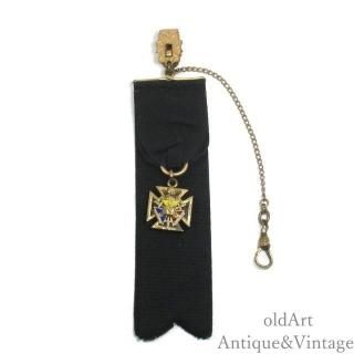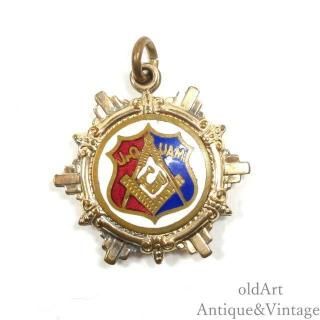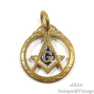 USA製1890-1910年代アンティークJrOUAMフリーメイソン繊細彫刻エナメル金張りフォブペンダント【N-25592】14,800円(内税)